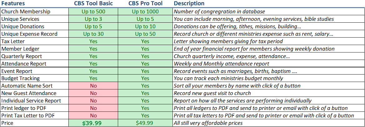 CBS Tool is designed for startups, small and mid size churches that want to get
